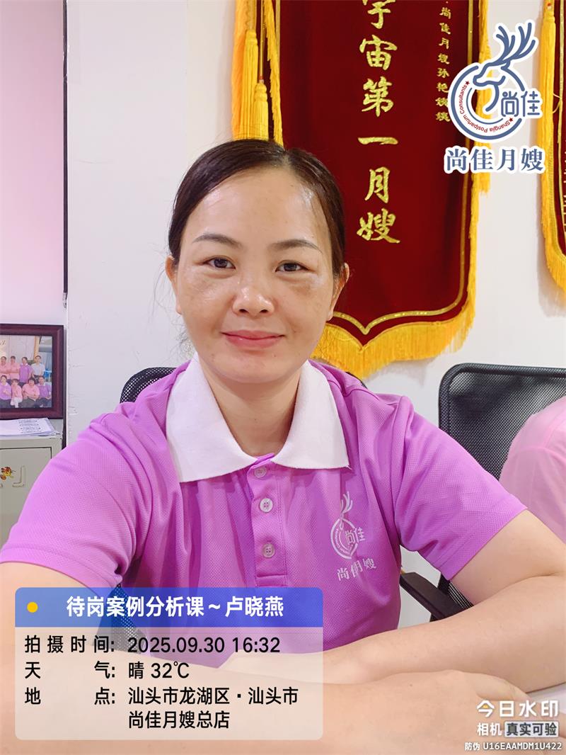 曉燕是揭陽(yáng)人嫁豐順,因喜歡寶寶加入母嬰護(hù)理行業(yè),擅長(zhǎng)給產(chǎn)婦擦身,按摩,母乳指導(dǎo),對(duì)于寶寶的護(hù)理,能夠細(xì)致的觀察寶寶的黃疸,紅屁屁等。做事勤快,認(rèn)真負(fù)責(zé)!