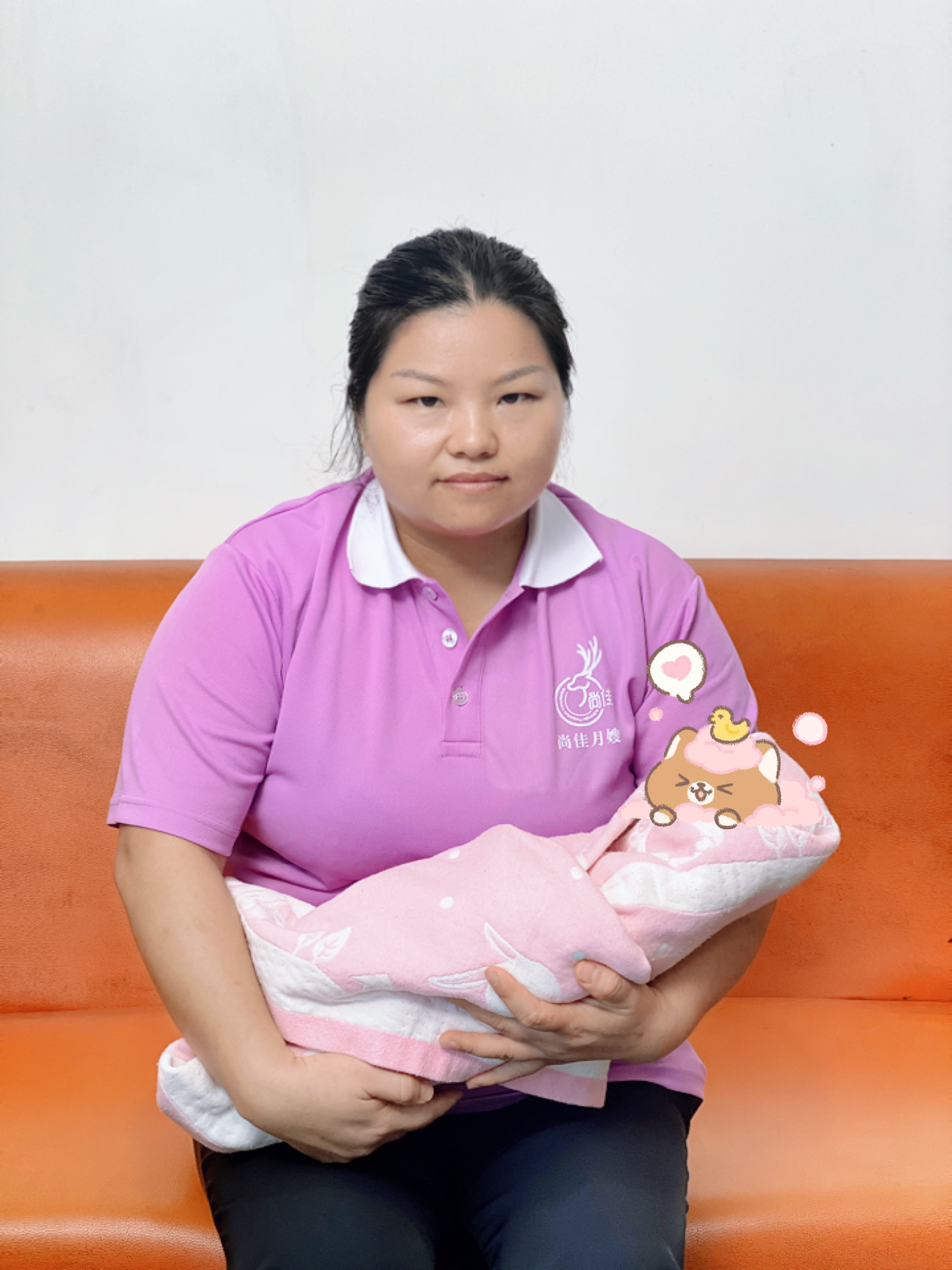 青姐來自江西省瑞金市,性格開朗,親和力強,有耐心,容易溝通,能吃苦耐勞,工作認(rèn)真負(fù)責(zé),擅長母嬰護理,輔食添加;寶媽乳房護理,堵奶,少奶,服務(wù)期間,客戶對其月子餐的制作贊不絕口。