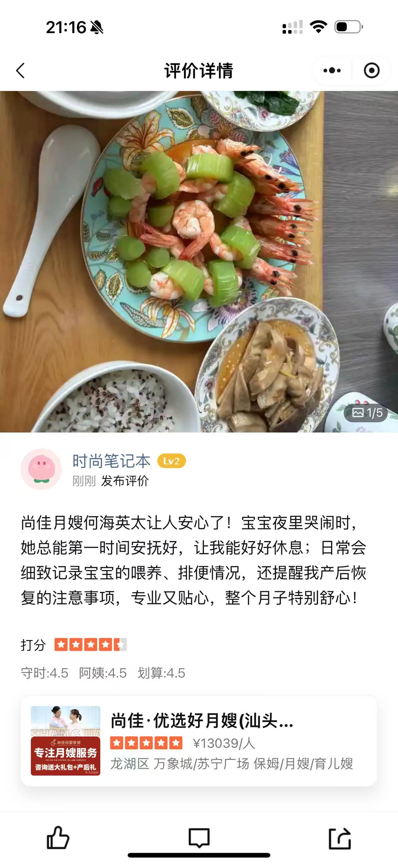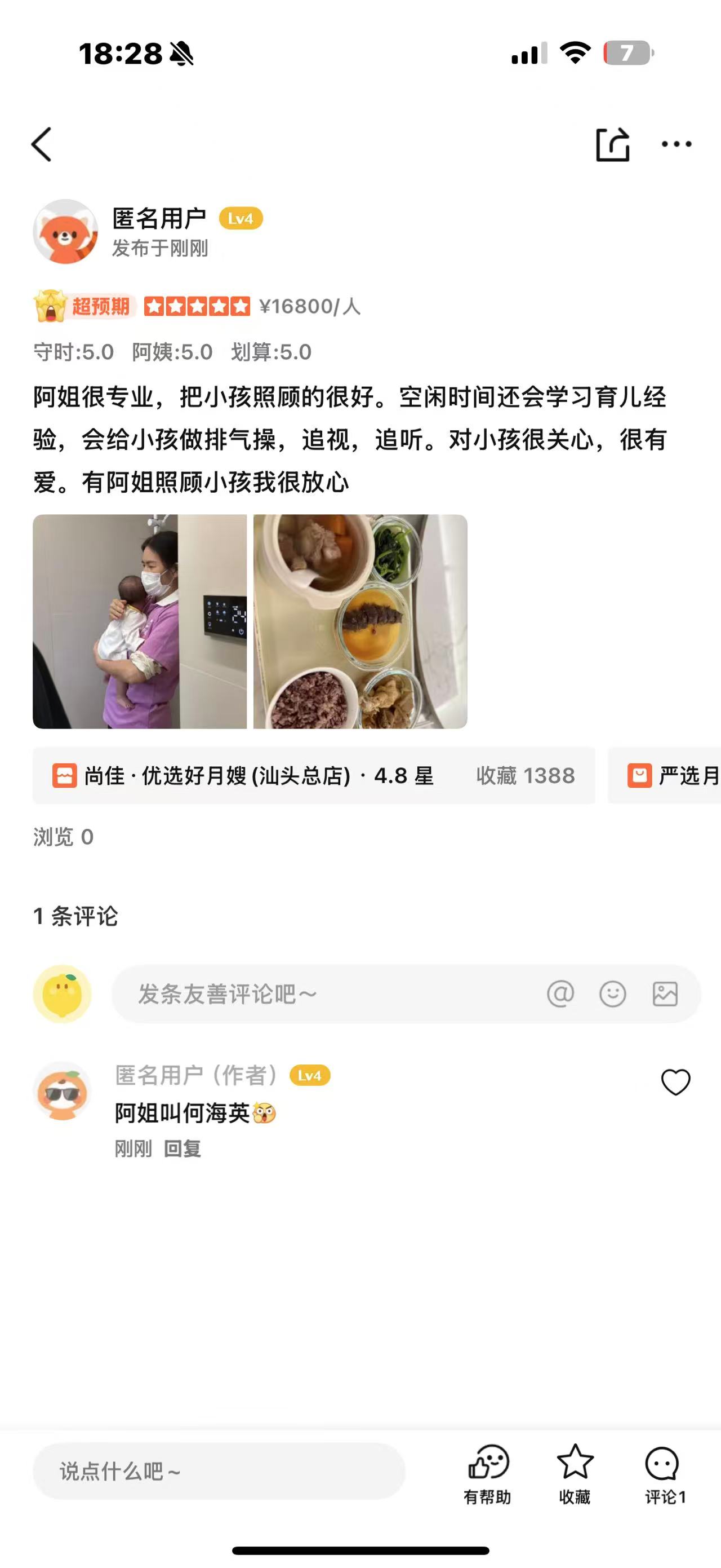 海英姐來自廣西容縣,本人待人熱情喲,溝通能力好,動(dòng)手能力強(qiáng),月子護(hù)理經(jīng)驗(yàn)十分豐富。在護(hù)理新生兒方面很細(xì)心,洗澡、撫觸、排氣操都很熟練、耐心,會(huì)早早教,十分注重寶寶的潛能開發(fā),也很注重跟寶寶的互動(dòng),進(jìn)行聽覺視覺的開發(fā),調(diào)整寶寶的作息時(shí)間,注意細(xì)節(jié),觀察寶寶皮膚、氣色、大小二便跟動(dòng)態(tài),預(yù)防紅臀、熱疹,及時(shí)控制濕疹、黃疸,讓寶寶健康成長;對(duì)產(chǎn)婦乳房護(hù)理、惡露觀察等寶媽護(hù)理做得也很好。是個(gè)非常優(yōu)秀的月嫂。