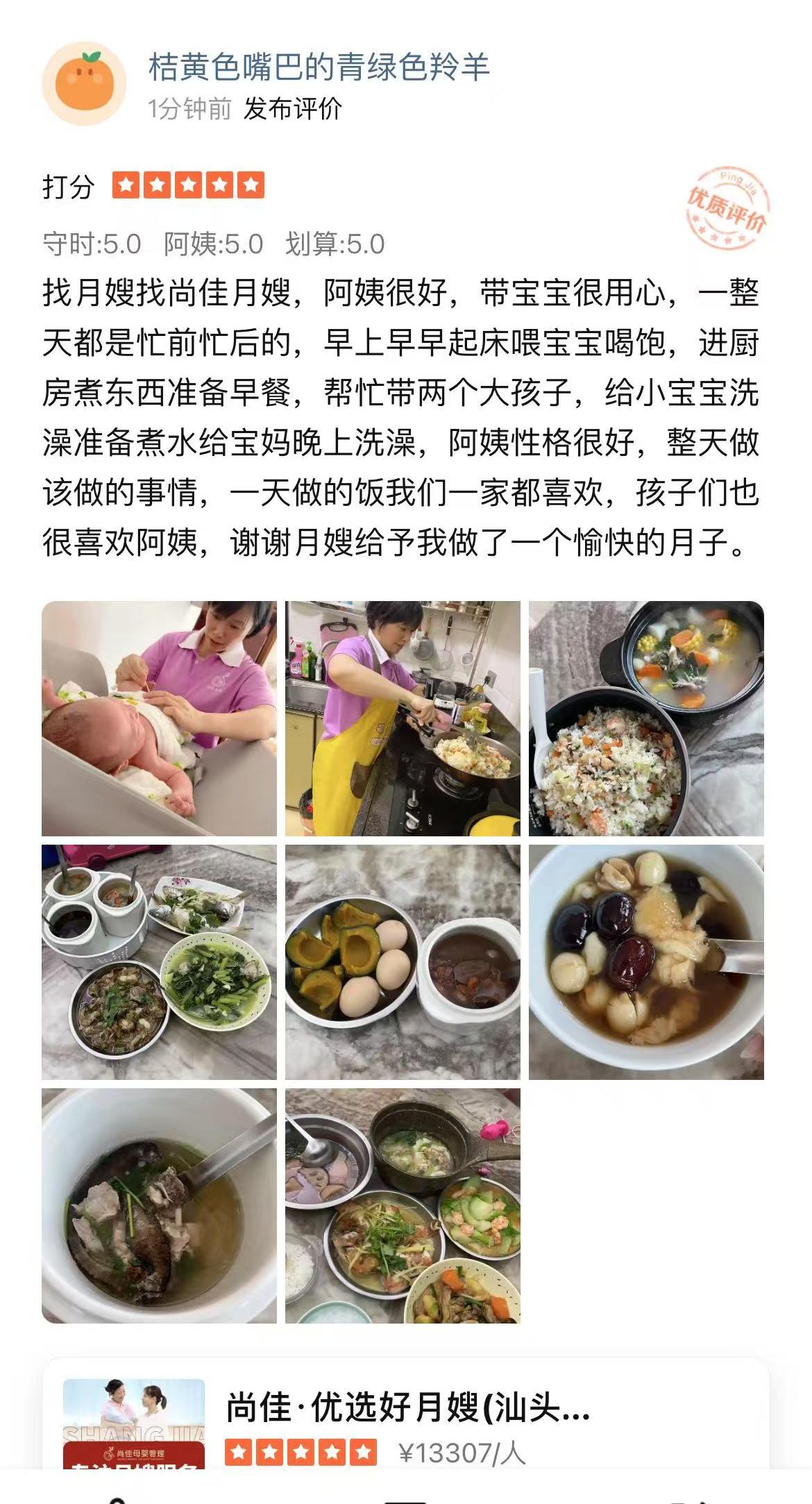 細(xì)妹來自汕頭,積極向上,做事勤快,一直在尚佳從事月嫂行業(yè),做到盡心盡力服務(wù),并無一投訴,無一差評,對待寶寶如同自己孩子,對寶媽的護(hù)理也是細(xì)心貼心,對待寶媽家里人也是熱情開朗,做事認(rèn)真負(fù)責(zé),踏實(shí)肯干。