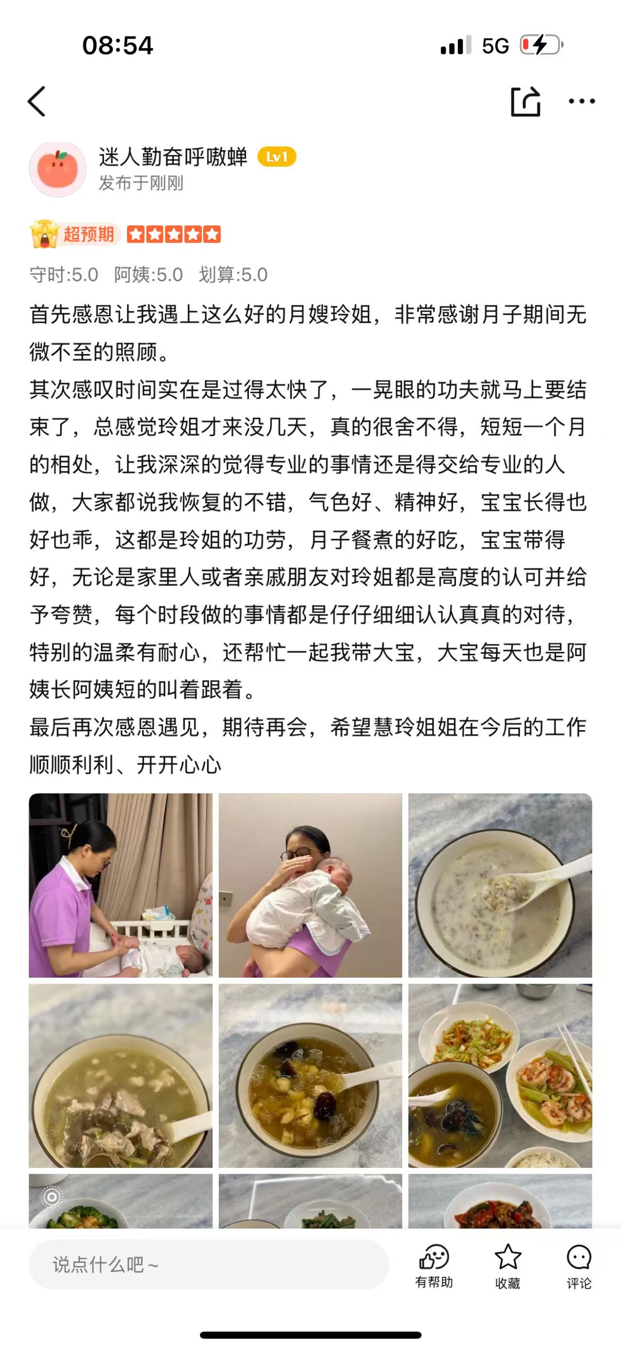 慧玲,性格溫和,勤勞認(rèn)真,有從事母嬰多年的護(hù)理工作經(jīng)驗,能準(zhǔn)確地讀懂寶寶的需求,幫多個寶媽量身搭配了營養(yǎng)科學(xué)月子餐,深受寶媽喜愛。